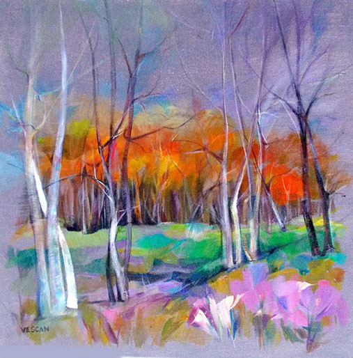 Rodica Vescan followed a dynamic path after graduating from the "Ion Andreescu" Plastic Art High School in Tg. Mures, Romania, and then the Technical School S.T.A.C.O. in Bucharest, the Department of Interior Design: Furniture, Interior Decoration, and then studied at the "Ion Andreescu" Institute of Fine Arts in Cluj-Napoca, in the Industrial Design Department. She participated in personal exhibitions and group shows in Romania and Hungary, in Cluj, Bistrita, Budapest, Keszthely. She made documentary tours in many countries and participated in creative camps abroad. The painting universe of Rodica Vescan comes from the need to recover an imaginary reality circumscribed into the everyday universe, on a large spectrum, from natural landscape to the city universe, from anonymous portraits to personalized ones, with repeated “breaks” in the world of flowers, which represents a refernce point of the artist. – Quoted in the article by Nicolae Baciut, Vatra Veche, 2015*