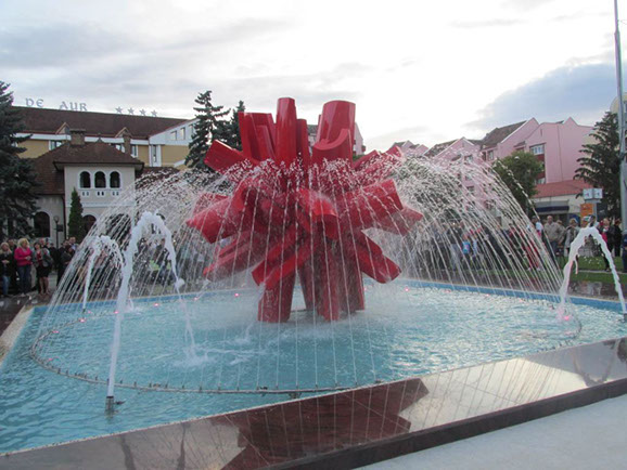 Modular sculpture, fountain located in Petru Rares Square, Bistrita, Romania